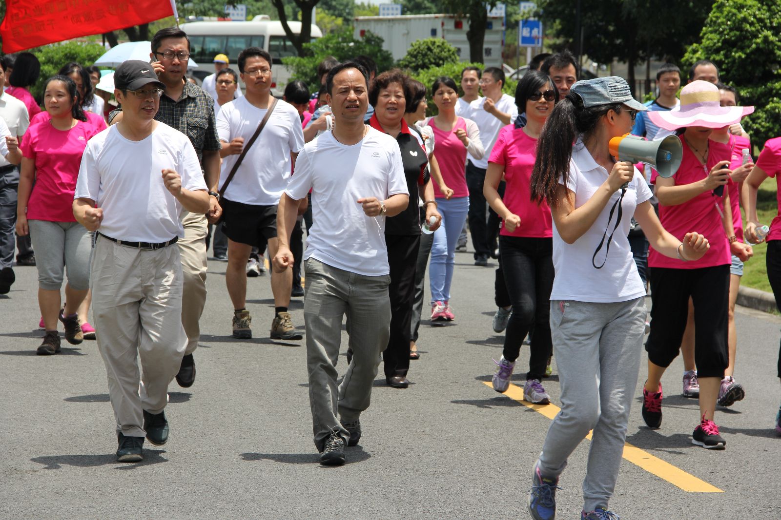 李志新书记和田利香副书记分别做了启动动员。李志新书记从健步走的科学原理阐述了健步走活动的良好效果,证明了健步走确实是促进健康的一个实用且有效的方法。他指出,随着职业人群健康问题的日益严重,推广健步走活动很有必要,职业人群保持身体健康不单是对自己负责更是对社会负责。他和田利香书记也分享了自己的健步走实践经验,现身说法证明了健步走对提高生理和心理机能,降低慢性病危险因素有良好的效果。最后田利香书记表态,她相信广东省两个项目点将完成好此项干预工作,她要求每个队员都要努力完成“日行万步”的要求,坐言起行,力争个人和团队成绩均进入全国前列。在两位领导的热情动员下,现场的参赛队员均深受鼓舞。