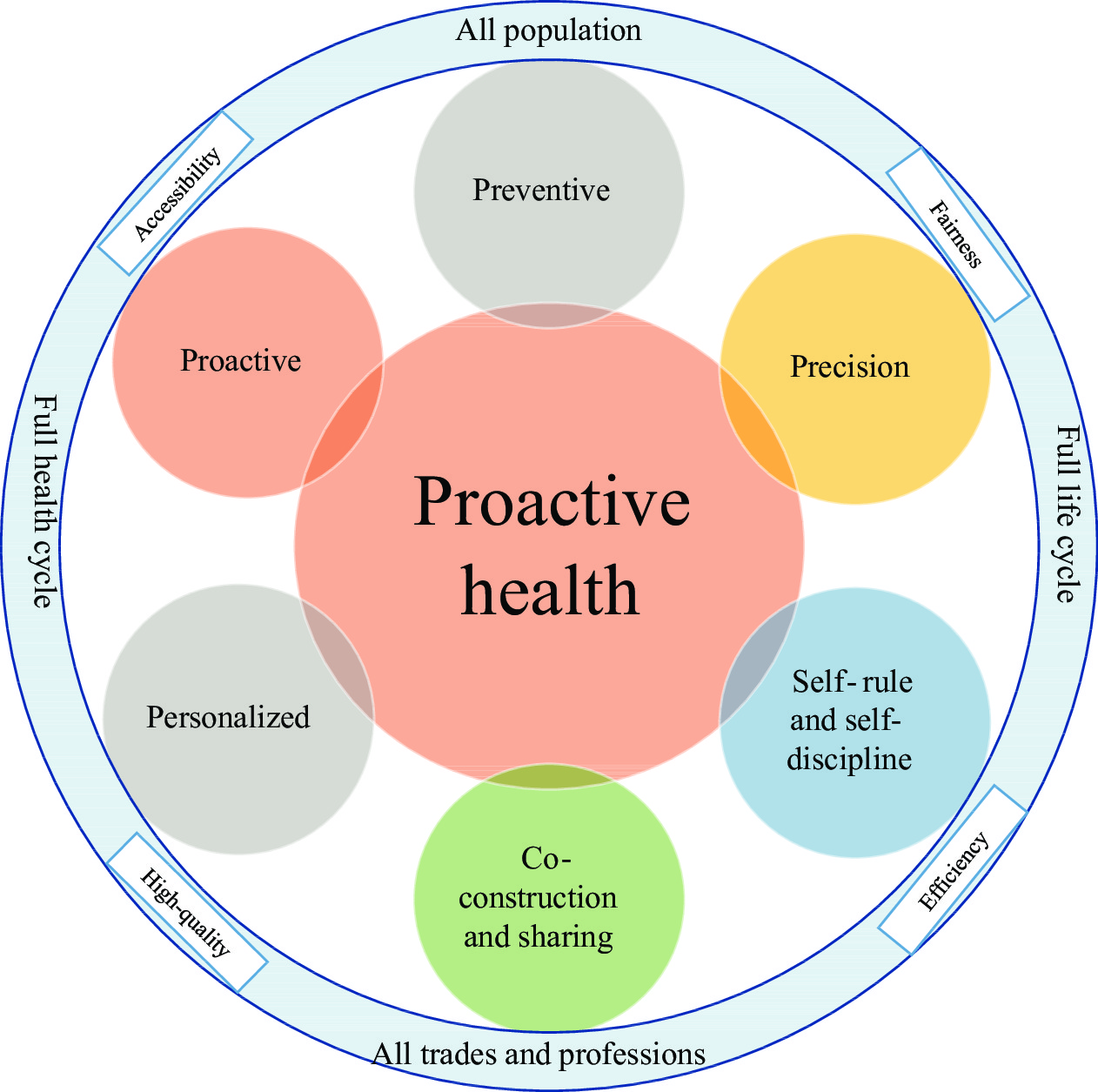 Although the concept of Proactive Health has been proposed before, there continues to be a lack of well-developed interdisciplinary systems and independent applications of key technologies. A most fundamental and critical deficiency is that there is no unified definition of Proactive Health in China’s academic community. Therefore, based on the concepts of Proactive Health, we analyzed and described the natural characteristics and implications of Proactive Health to establish an exact definition of Proactive Health.