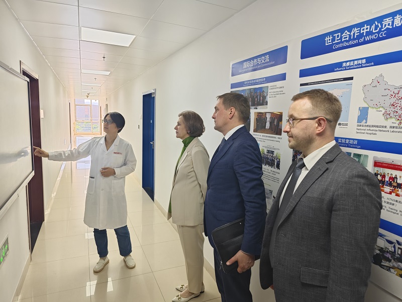 会谈结束后,波波娃局长和斯摩棱斯基副局长一行参观了中国疾控中心病毒病所,听取了新冠病毒变异株监测系统介绍,并参观了国家流感中心实验室。