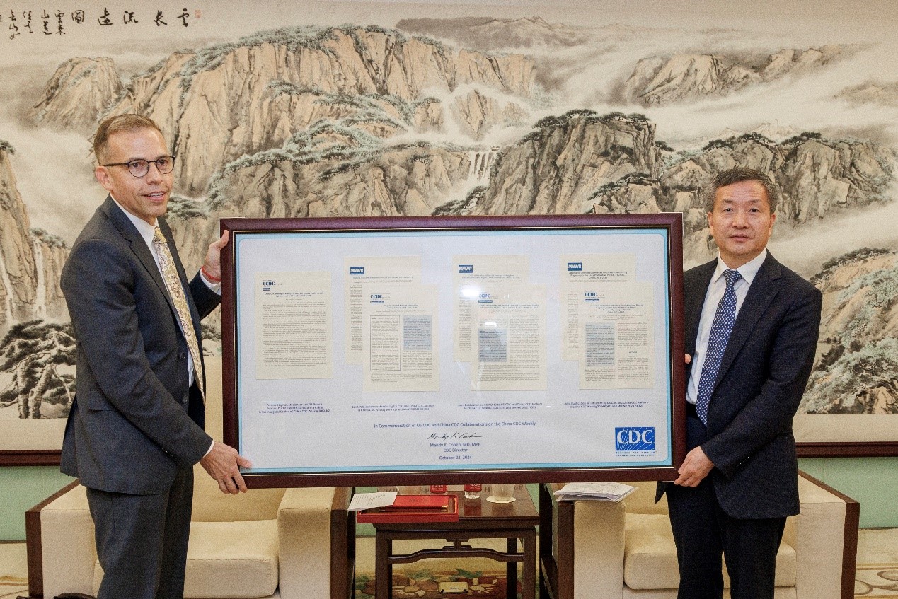 为此,沈主任在施麓德博士即将离任之际,授予他“中国疾控中心全球健康荣誉顾问”称号,并颁发了感谢状。施麓德博士表示,在中国工作三年收获颇丰,在促进中美卫生合作的同时,更收获了众多合作伙伴,了解了中国同行的专业与敬业精神,他对中美疾控中心未来合作充满信心。施麓德博士向沈主任赠送了中美疾控中心专家在《betway手机投注 周报(英文)》(英文名:China CDC Weekly)和美国疾控中心《发病率和死亡率周报》(英文缩写:MMWR)上发表的联合署名文章单行本,以纪念双方在促进China CDC Weekly高质量发展方面的成功合作。博尔博士发言表示今后将继续加强与我中心的合作与交流。